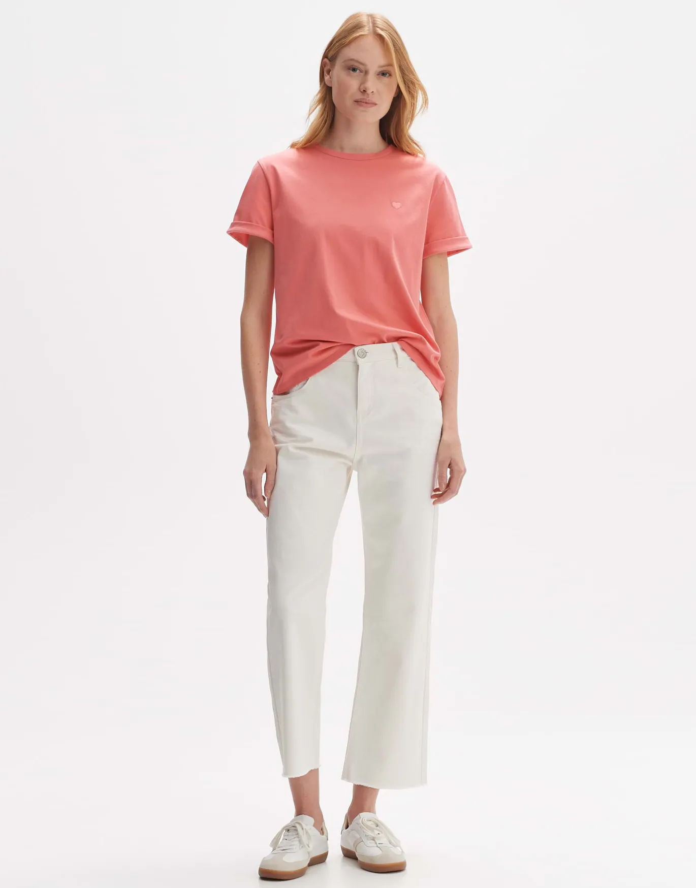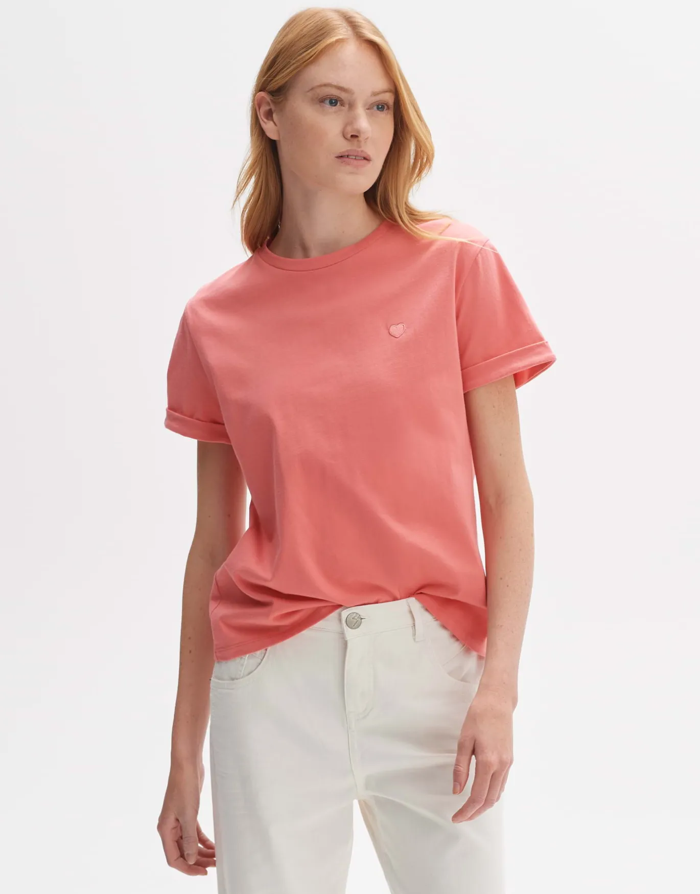 Das coole T-Shirt aus einer natürlichen Baumwollqualität kreiert einen lässigen Look. Das aufgestickte Herzmotiv wird zum liebevollen Detail.