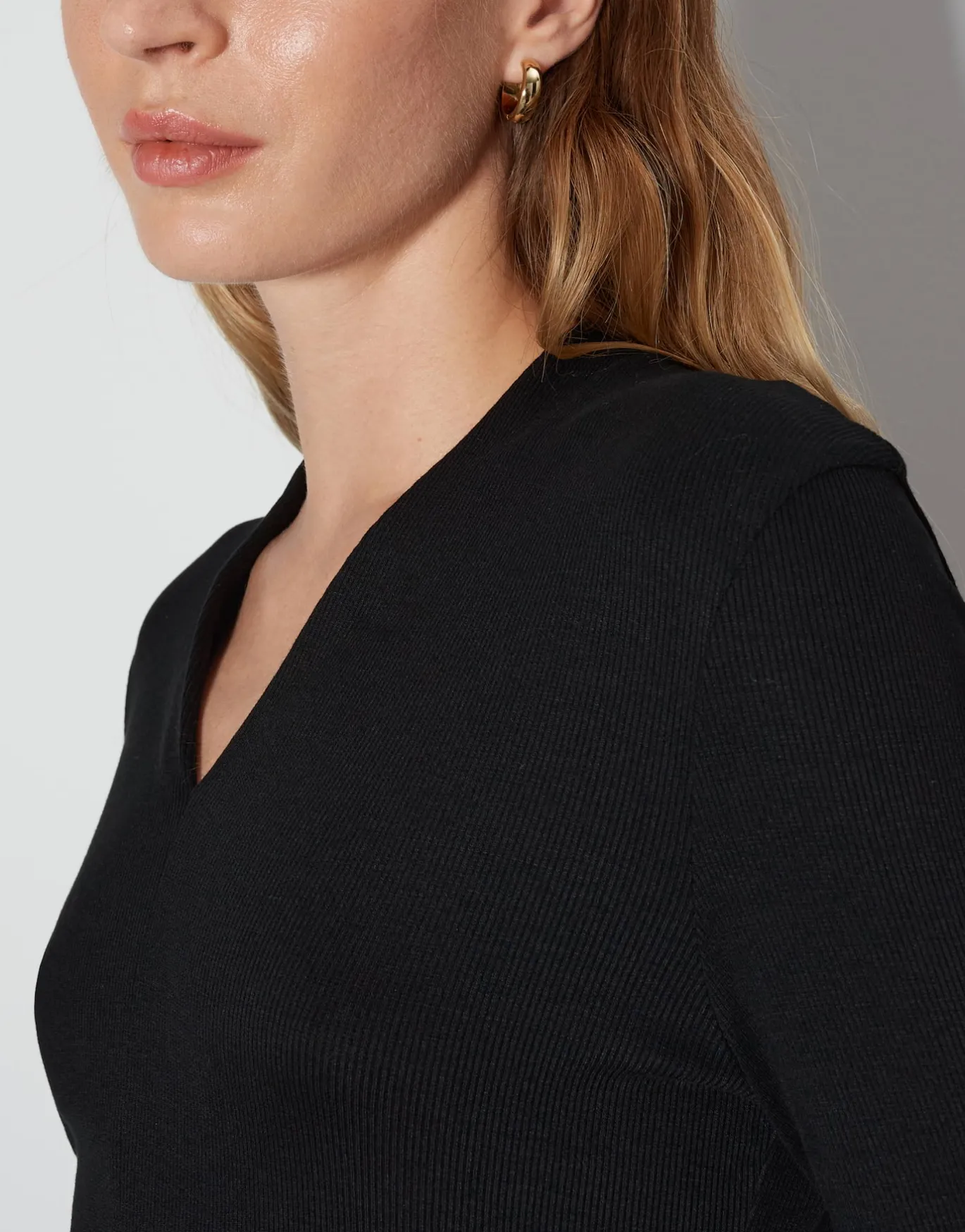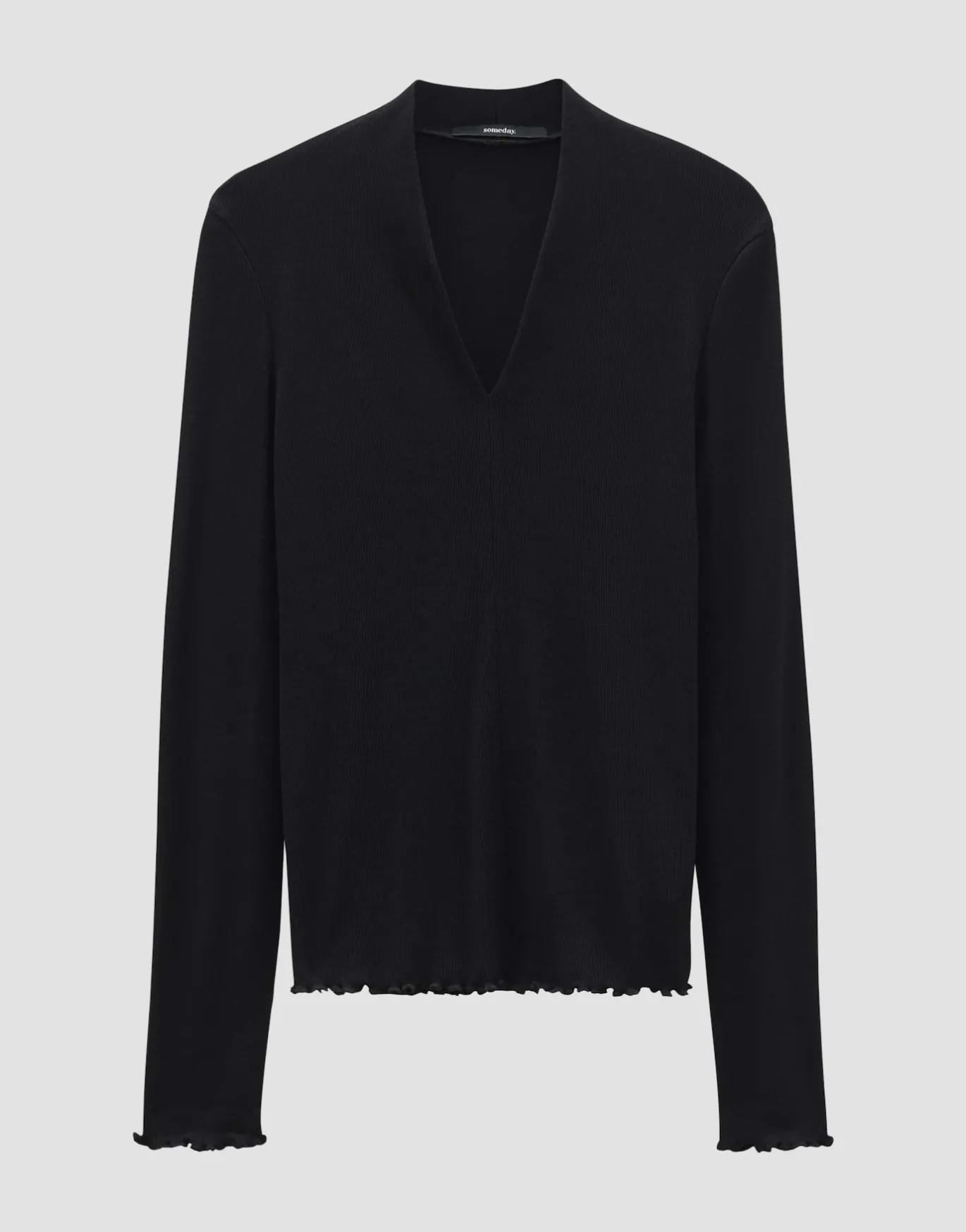 Dieses Langarmshirt lebt von femininen Details wie dem V-Ausschnitt und den verspielten Rollkanten, die das Shirt besonders schmeichelnd wirken lassen.