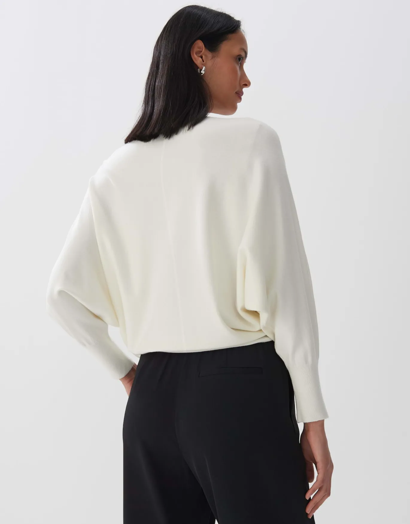 Dieser weich fallende Strickpullover ist ein schmeichelnder Jackenersatz im Sommer und im Winter ein kuscheliger Überzieher.