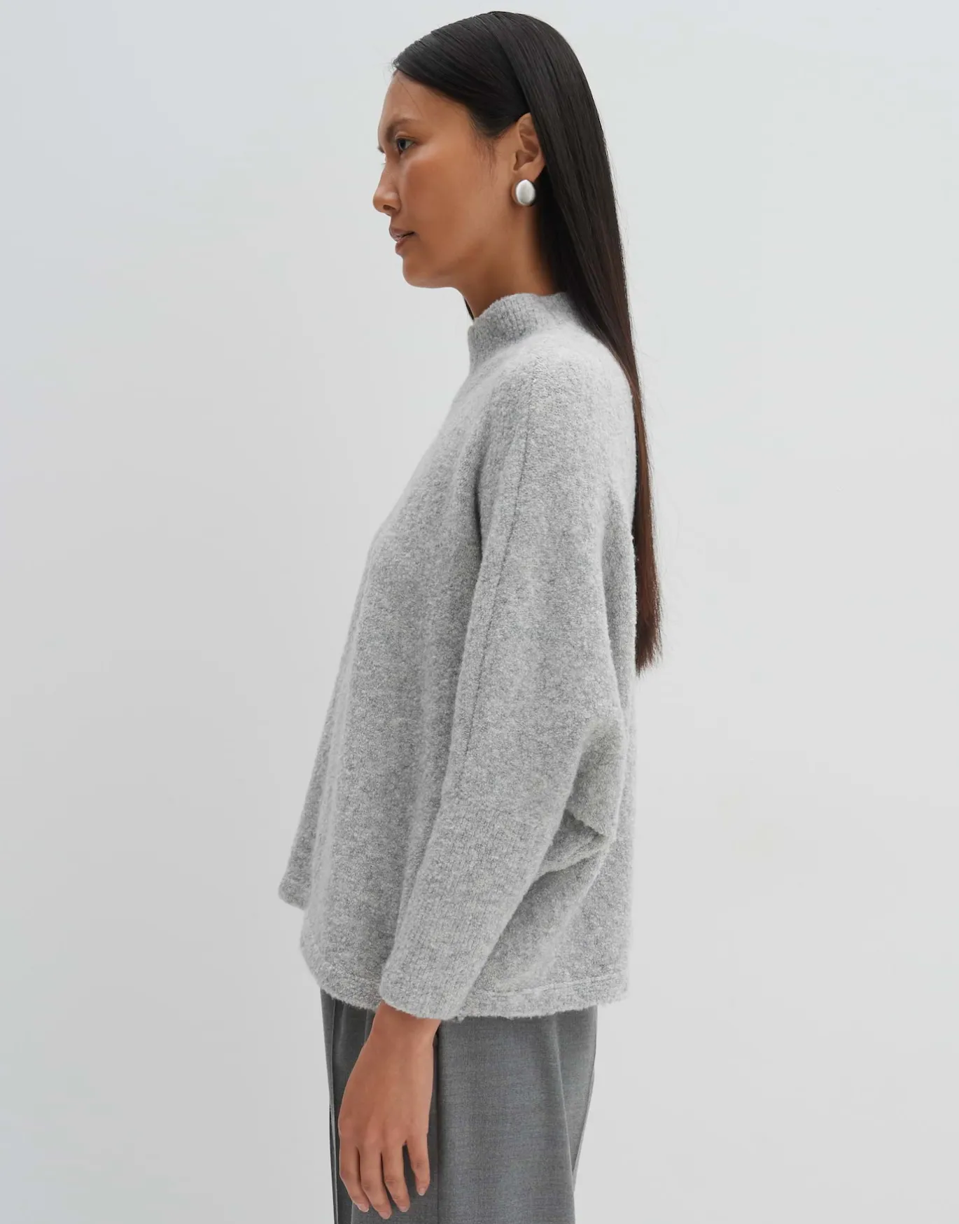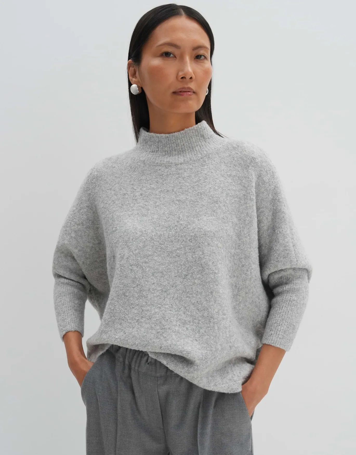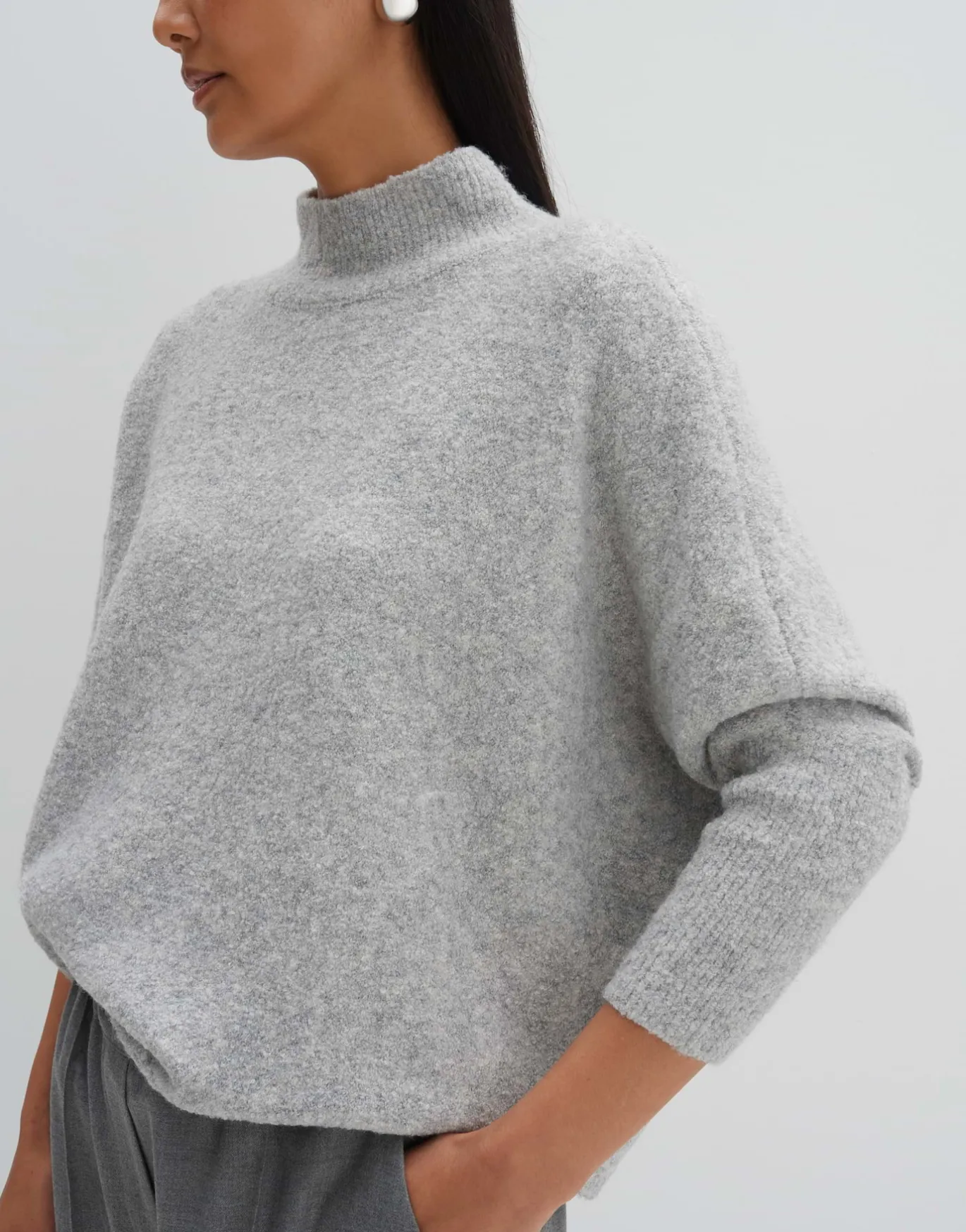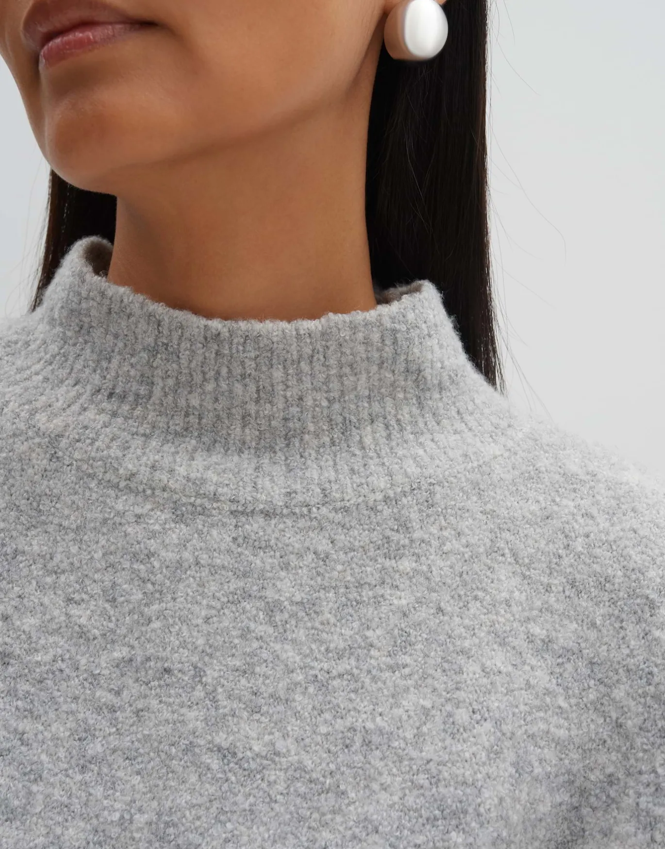 Der Strickpullover erhält durch die Bouclé Optik eine schöne, dynamische Oberfläche und wärmt angenehm durch den Woll-Anteil.